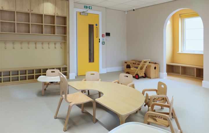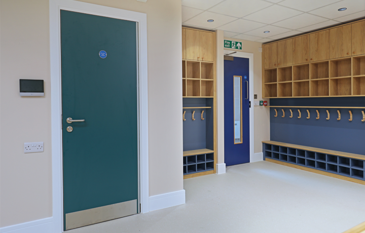 With access and safety for young children of paramount importance, protecting them from accidently trapping their fingers in doors is a crucial specification consideration. Our strong business relationship with Safehinge Primera ensured doorsets were supplied with an integral finger guard system, complete with a concealed door closer to remove the dangerous gap between door and frame.